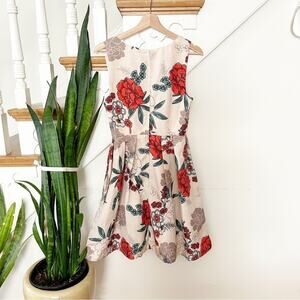 ModCloth Cream Red Floral Print Sleeveless Sweetheart Neckline Dress Size S