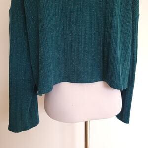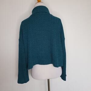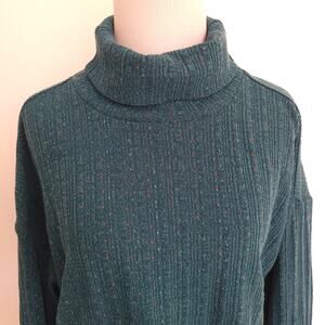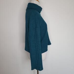 ModCloth Cropped Turtleneck Knit Top Teal Confetti Long Sleeve Women Small