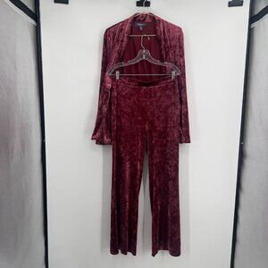 ModCloth Crushed Velvet Blazer & Pants Set Burgundy Size L