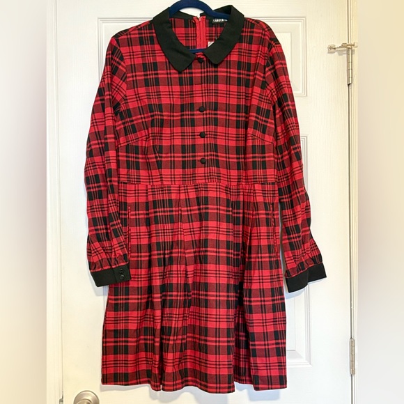 Stylish plaid dress with button front. Features a classic collar. Ideal for casual outings.