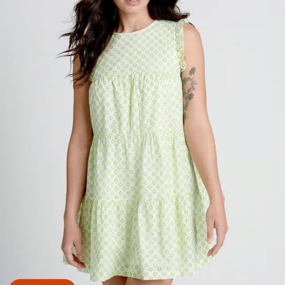 ModCloth Day Tripping Eyelet Flower Fields Trapeze Dress Green White Size Medium