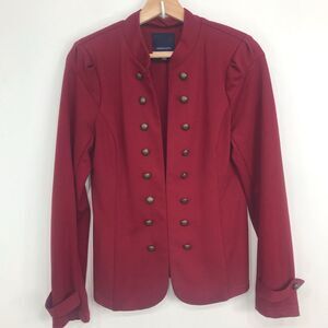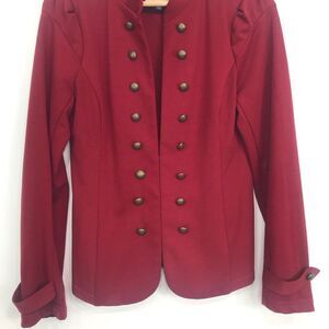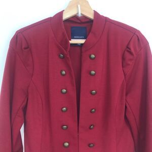 ModCloth Deep Red Double Metallic Button Row Military Style Blazer Jacket