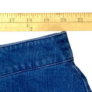 - Description: ModCloth Denim Skirt Womens 22 Blue Button Front Classic Western Flare Midi Skirt