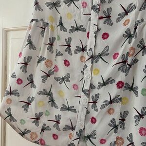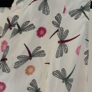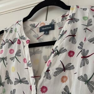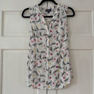 ModCloth Dragonfly Print White Tie Back Sleeveless Blouse Vacation Size Small