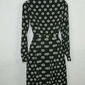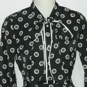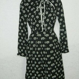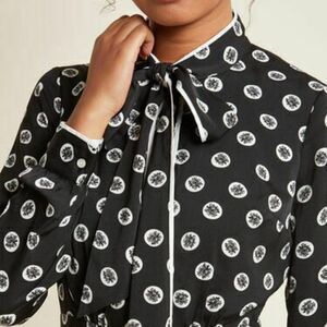 ModCloth Pleated Shirt Dress Tie Neck Black White Floral Dot Print