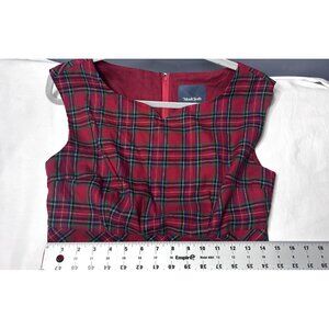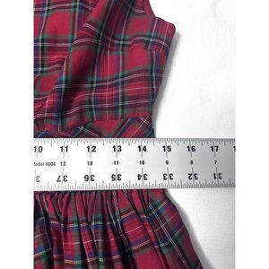 Style: Sleeveless fit and flare midi dress with a classic red tartan plaid pattern and full gathered skirt.