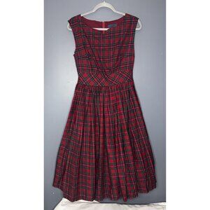 ModCloth Dress Womens 8 Red Tartan Plaid Fit & Flare Midi Holiday Party Retro