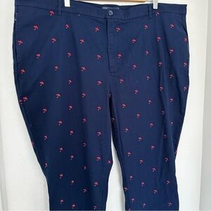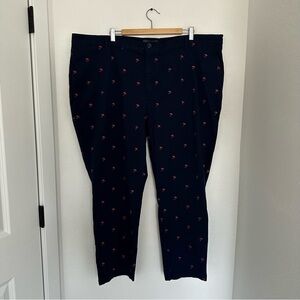 ModCloth Embroidered Umbrella Print Pants Chino Style Navy Red Size 28 Women’s