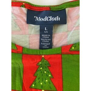 ModCloth namesake label! What's not so apparent to the onlooker is just how comfortable you feel all wrapped up in the short sleeves, gathered waist, and exclusive, hand-drawn, checked print with Christmas trees scattered throughout! It's an uplifting experience unlike any other that's just delightful for the wearer and admirer alike!