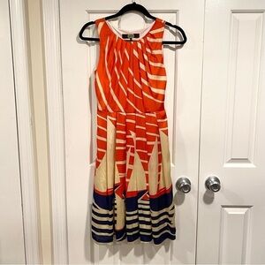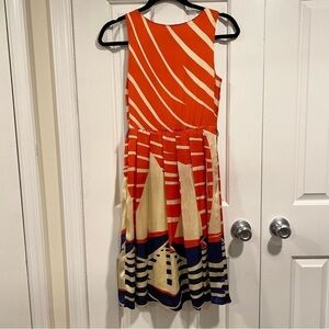 Fun brightly colored boat theme dress by Eva Franco! Silky material. Knee or below-knee length; sleeveless. New without tags.
