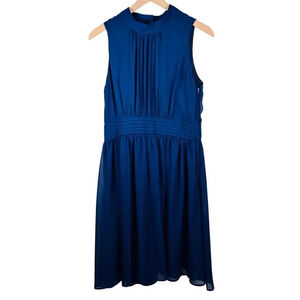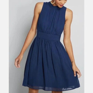 ModCloth Fervour Windy City Dress Size Large Navy Blue Chiffon Fit & Flare