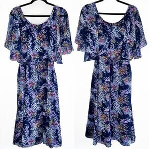 ModCloth Fiore Your Entertainment Flora Navy Blue Floral Cold Shoulder Dress Lg