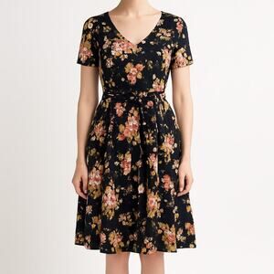 ModCloth Fit & Flare Dress Retro Floral Belted XS