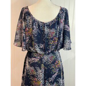 ModCloth Floral A-Line Midi Skirt S Polyester Navy Multicolor Pockets
