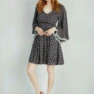 Chic floral dress with elegant bell sleeves. Perfect for any occasion. Pictures don’t do this dress justice! It’s gorgeous IRL.