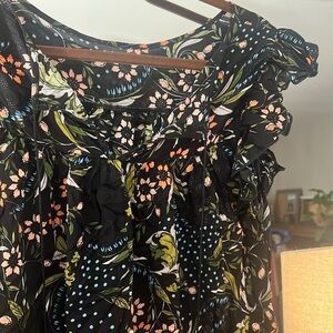 ModCloth Floral Flutter Sleeve Blouse - so adorable! Missing one tassel on the front string, but otherwise like new