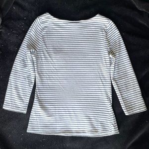ModCloth Fox White Blue Striped Tee Shirt 3/4 Sleeves, XSmall