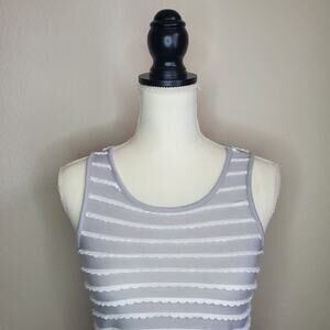Classic with a playful twist, this ModCloth knit tank top features white scalloped horizontal stripes against a versatile gray backdrop. This top is perfect for layering or wearing on its own. The pullover style makes it easy to throw on for a casual yet polished look; great for brunch, work, or weekend outings!