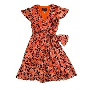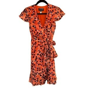 ModCloth Hutch Women's Party Prowl Wrap Mini Dress Size S Orange Leopard NWOT