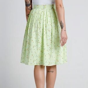 Inspired by 1975’s Australian cottagecore aesthetic, this fresh pleated A-line skirt from our ModCloth namesake label is a vintage-inspired essential with an exclusive spring green and white gingham printed cotton-blend fabric that has been custom printed with tiny, 3D yellow, pink, and purple floral blossoms throughout from our ModCloth namesake label. This fully-lined knee-length skirt will elevate your retro fashion game with style and ease, featuring a high-waistline with button closure at the back and handy side pockets.
