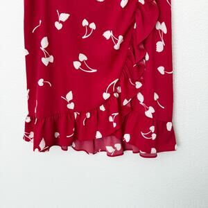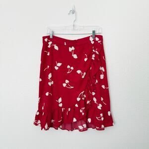 [ModCloth] It's A Wrap Red Cherry Heart Print Ruffle Faux Wrap Midi Skirt Sz 12