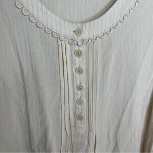ModCloth Ivory Pintuck Button Down Dainty Long Sleeve Blouse Size Medium