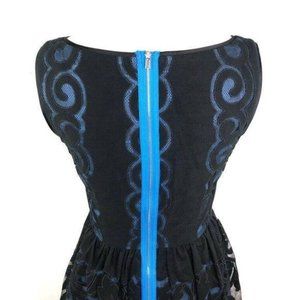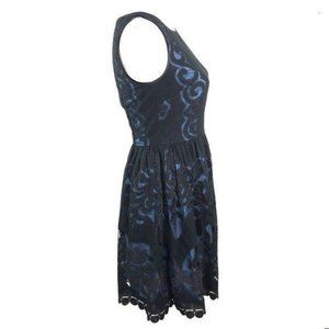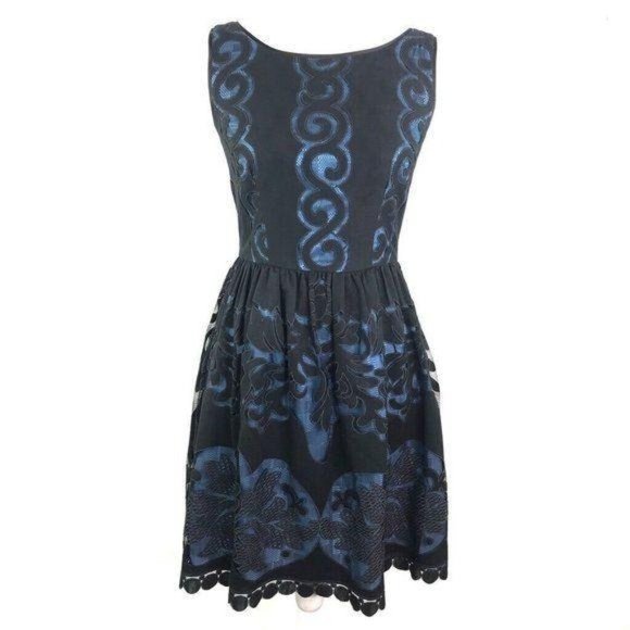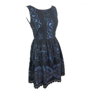 ModCloth Ivy + Blu Women's A Line Dress Black Geometric Crochet Lined Scoop Neck 2