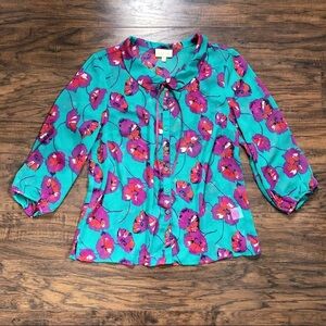ModCloth • Jade Floral poppy print Peter Pan collar blouse chiffon bow tie neck