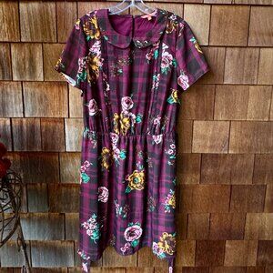 Keywords: ModCloth dress, floral dress, plaid dress, Peter Pan collar, belted dress, A-line dress, maroon dress, women's dress, size 2X dress, short sleeve dress, casual dress, retro dress, vintage inspired, floral plaid dress, lined dress