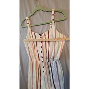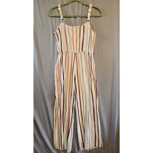 ModCloth Jumpsuit Womens Medium Stripe Pastel Linen Blend Button Front Wide Leg