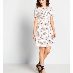 Never worn/new with tags.....LOVE the dress and pattern but it just doesn’t work for my body shape. PERFECT for a wedding guest dress!