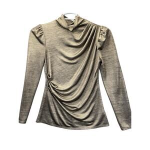 ModCloth Long Sleeve Mock Neck Pullover Blouse Metallic Gold Women’s Size Small