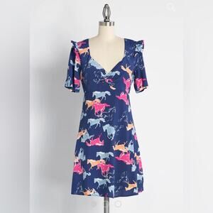 ModCloth M neon stampede dress with horse print
