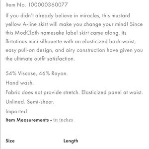 Sold out! Yellow miniskirt. Very sheer with no lining. Runs a little large. New with tags. Super cute.