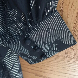 Side pockets. Fully lined except semi-sheer sleeves. Back zipper with hook and eye closure. Button closure at sleeve cuffs. NWOT Excellent condition
