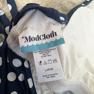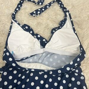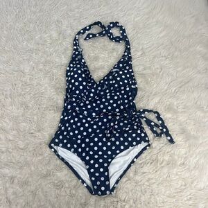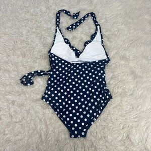 ModCloth NAVY POLKA DOT Reese Halter One-Piece Retro Swimsuit Size Large Pin Up