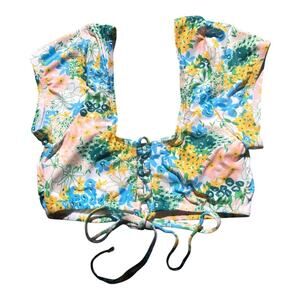 ModCloth NIP Amari Retro Bohemian Vibes Yellow Blue Floral Crop Bikini Top Small