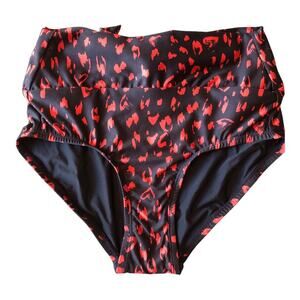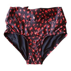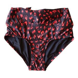 ModCloth NIP Clarice High-Waisted Bikini Bottom Black Red Cheetah Extra Small