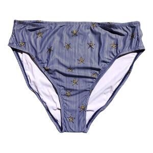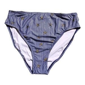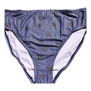 ModCloth NIP Franky Blue White Stripe Gold Starfish High-Waisted Bikini Bottom