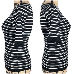 ModCloth NWOT Ruffle Knit Top Stripe Size XXS Half Sleeve Black White Boat Neck