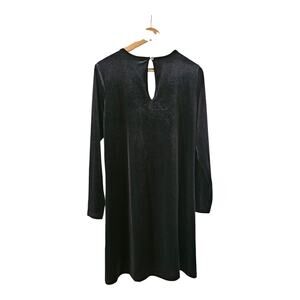 This stunning ModCloth dress in size L is perfect for any formal occasion or party. The black velvet fabric is accented with stars, adding a touch of glamour to the mini dress. The dress features a round neckline, long sleeves, and a button closure.