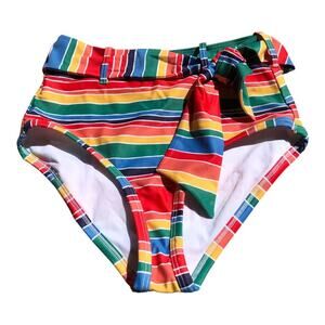ModCloth NWT Greta Rainbow Stripe Detachable Belt High-Waisted Bikini Bottom MD