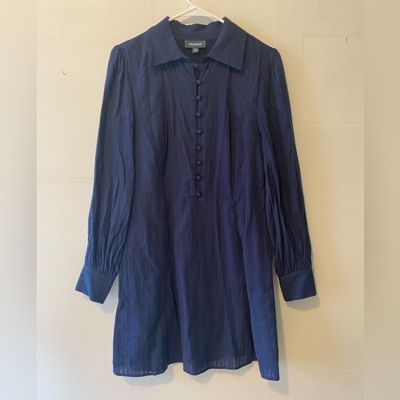 Much more fitted than it appears on hanger. Side zipper. Attached slip lining. Cute sleeves puff out from elbow to wrist.