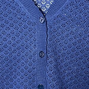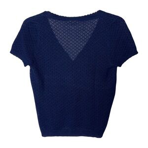 ModCloth | Navy Blue Open Knit Short Sleeve Button Up Cardigan, Small