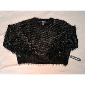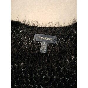 ModCloth Nipping at Your Nose Cropped Sweater Black Silver Eyelash Knit Sz S NWT