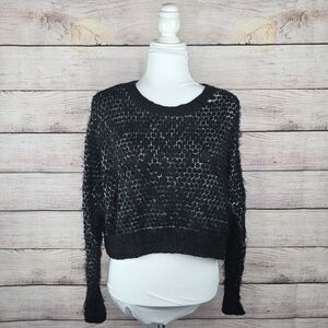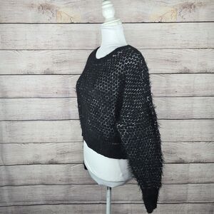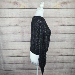 ModCloth Nipping at Your Nose Cropped Sweater Black Small Metallic Eyelash Knit