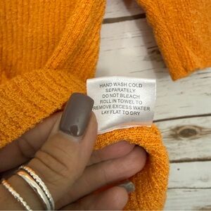 ModCloth Orange Ribbed Button Short Sleeve Cardigan Sweater in a size S