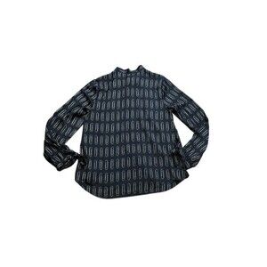 ModCloth Paperclip All Over Print Pussybow Tie Blouse Women's Size Large - Work