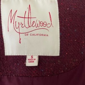 #modcloth brand Myrtlewood of California. Long hooded peacoat with resin brown toggles and deep pockets. I absolutely love this coat but unfortunately it’s too small on me now. Still in excellent used condition. Darts and details to add shape and fit you perfectly, in a gorgeous burgundy color with little speckles of red and blue through coat.