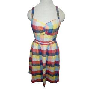 ModCloth Pink Floral Madras Dress – Sleeveless V-Neck Cottagecore Midi – Medium